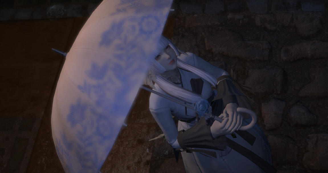 Shion is a feminine presenting raen whom appears to not have the ability to speak. Instead of words, this hingashi-native raen communicates through careful, kind gestures and her music. She rarely shows anger, disgust, nor judgement, merely a soft smile or flustered expression. Despite her gentle demeanor, Shion is one of the night-life, and is familiar with many cities' darker sides of life. Shion has been compared many a time to porcelain dolls due to their albinism as well and carefully calculated movements. They usually are misplacing the umbrella they use almost daily, so they stay within the shadows or the cities of Ul'dah and Limsa to protect from reddening. Many of times she can be seen busking the following areas : The Quicksand or Pearl Lane when she visits her friend P'Rein, and outside of the Fisher's Guild{The Moon does indeed haunt this character - feel free to whisper about it !}
